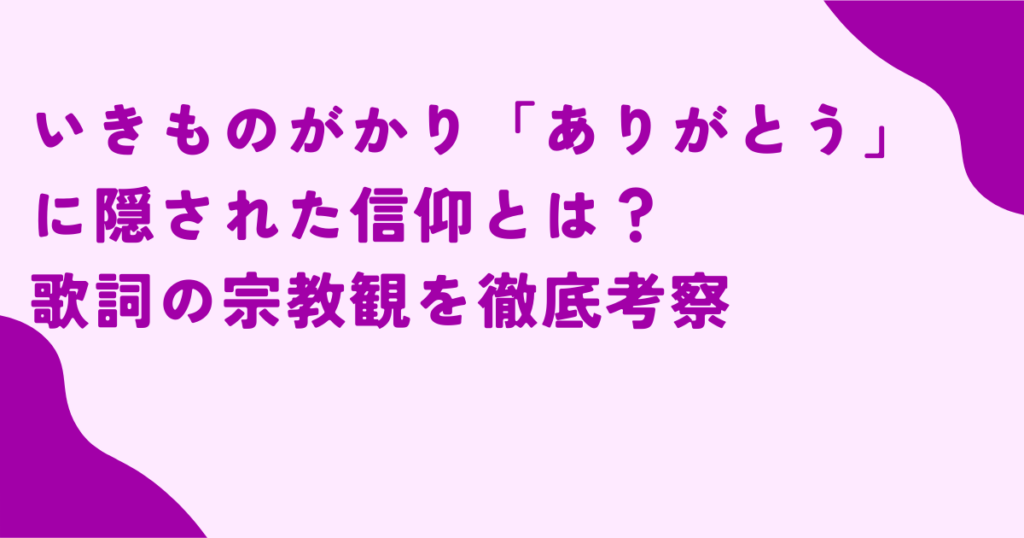 心に寄り添う楽曲で多くの人に愛されてきたいきものがかりさん。 そんないきものがたりさんですが「ありがとう」に込められた意味や宗教観が気になる方も多いのではないでしょうか。 この記事では歌詞の深い意味から隠された信仰的要素までわかりやすく解... -