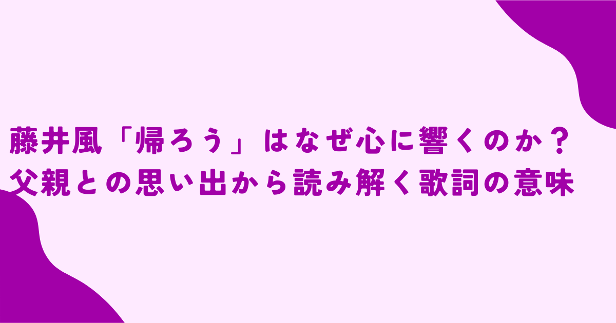 藤井風さんの「帰ろう」は父親の否定しない教育によって生まれた受容の価値観が反映されている可能性が高い楽曲であると考えられます。