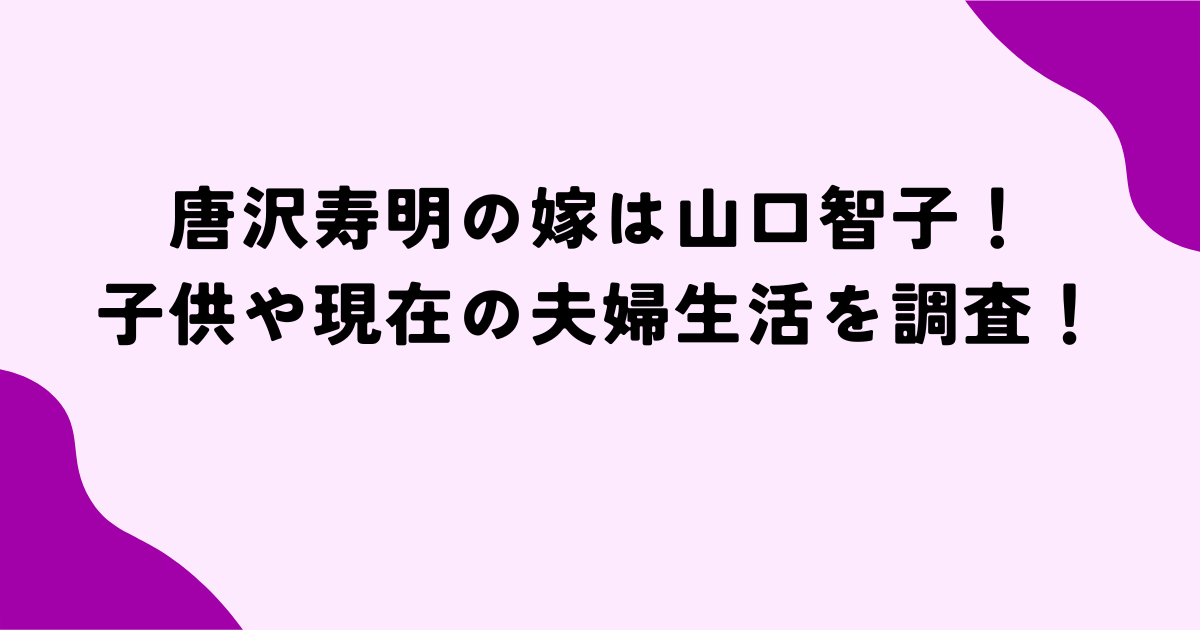 結論から言うと、唐沢寿明さんと山口智子さんの間に子供はいませんでした。